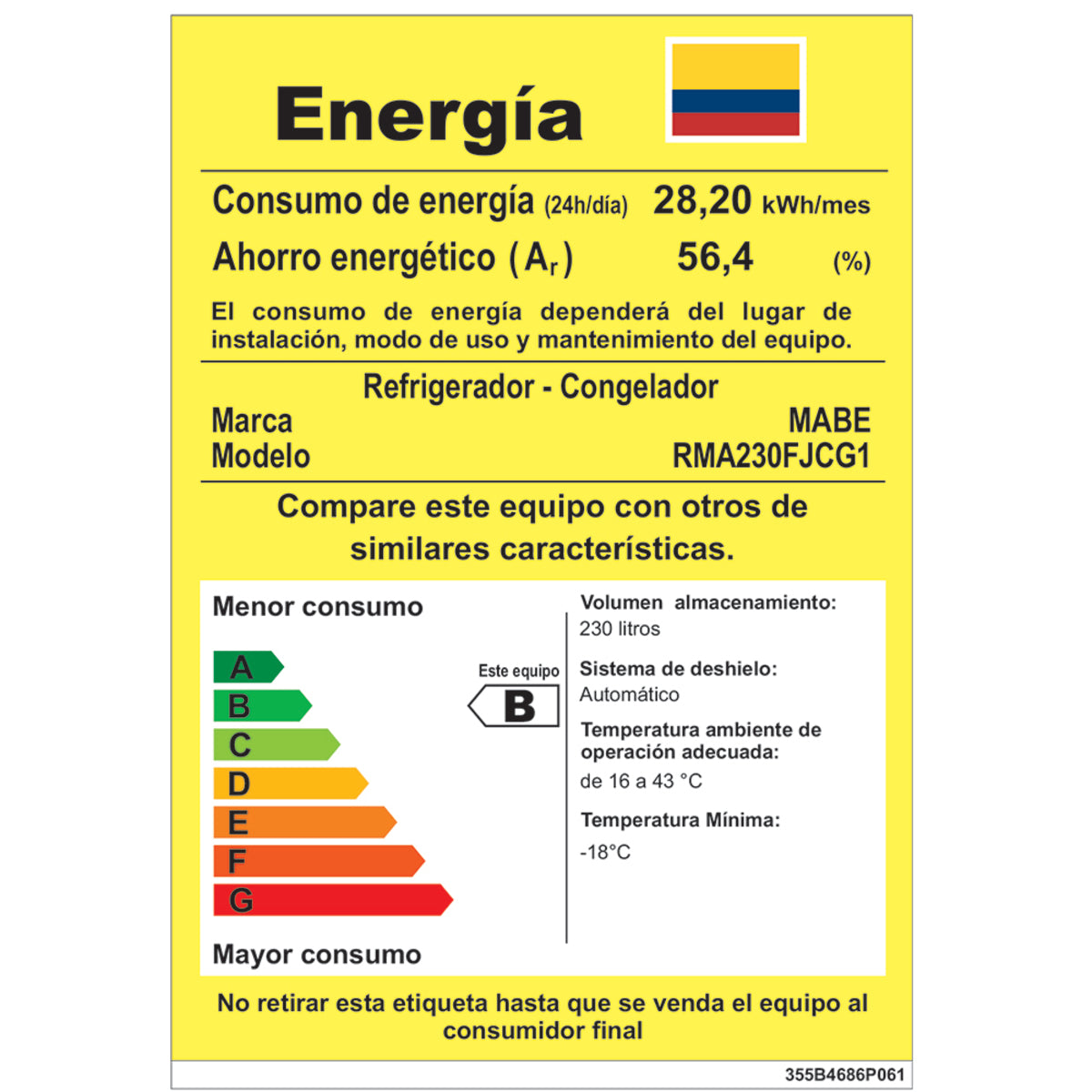 La nevera RMA230FJCG1 de MABE no frost Grafito tiene Tecnología Home Energy Saver. Ahorra hasta un 56% de energía con el compresor Eco Advance. Te da más frescura con el sistema Total Fresh Flow, mejora la distribución del aire y la conservación de tus alimentos. Te da más espacios inteligentes que permiten organizar con facilidad. Bandejas en cristal templado en refrigerador y bandeja en acero esmaltado en congelador para un flujo de aire rápido. No esperes más ¡Adquiérela aquí!