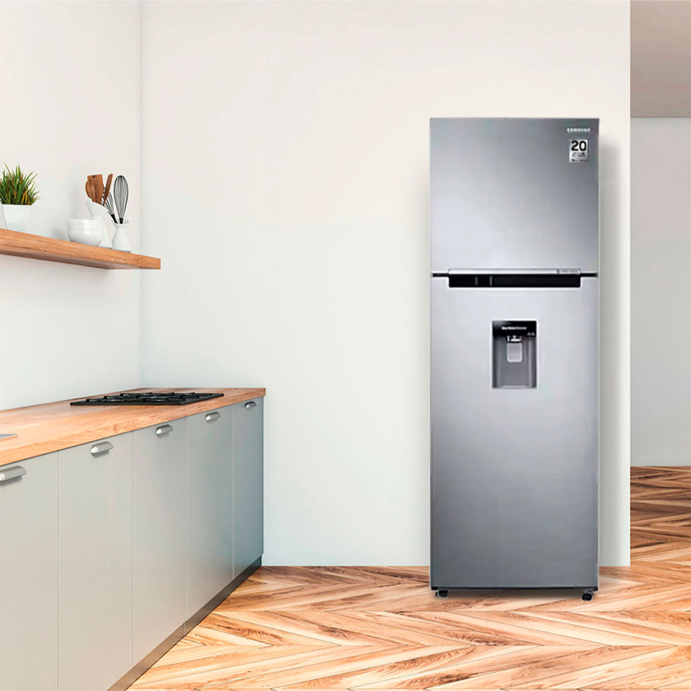 La nevera RT29K571JS8/CO cuenta con una mayor frescura en sus espacios debido a que tiene múltiples salidas de aire que proporcionan un enfriamiento más uniforme, garantizando que llegue aire frio a todos los compartimientos. Además tiene un Compresor Digital Inverter con 20 años de garantía, que nos da ahorro de energía y brinda mayor durabilidad. Así mismo cuenta con amplios espacios que permiten que tus alimentos estén mejor organizados.
